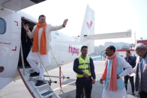 देहरादून। मुख्यमंत्री पुष्कर सिंह धामी ने मंगलवार को नैनी सैनी एयरपोर्ट से पिथौरागढ़-देहरादून हवाई सेवा का शुभारंभ किया व स्वयं भी हवाई जहाज में बैठकर देहरादून रवाना हुए। मुख्यमंत्री ने इस हवाई सेवा प्रारंभ होने पर सभी को बधाई दी उन्होंने प्रधानमंत्री नरेंद्र मोदी व नागरिक उड्डयन मंत्री श्री ज्योतिरादित्य सिंधिया का आभार भी व्यक्त किया। उन्होंने कहा उत्तराखंड धार्मिक पर्यटन की दृष्टि से अति महत्वपूर्ण राज्य है। यहां पर धार्मिक पर्यटन व प्राकृतिक पर्यटकों का आना-जाना सहजता से हो, इसके लिए हवाई सेवा अति आवश्यक है। पहले पिथौरागढ़ से देहरादून, दिल्ली जाने में 17 घंटे लगते थे। मोदी जी के प्रयास से ऑल वेदर सड़क बनने से देहरादून, दिल्ली 11 घंटे लगते हैं, सीमांत जिले में हवाई सेवा प्रारंभ होने के बाद 1 घंटे में देहरादून पहुंच सकते हैं।