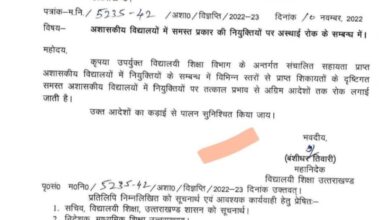 देहरादून। उत्तराखंड में अशासकीय स्कूलों में मनमानी भर्ती और गड़बड़ियों का शिक्षा महानिदेशक बंशीधर तिवारी ने संज्ञान लिया है। डीजी…