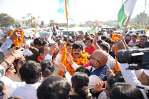 कांग्रेस अध्यक्ष बनने के बाद पहली बार देहरादून पहुंचे गणेश गोदियाल का जौलीग्रांट एयरपोर्ट पर जोरदार स्वागत किया गया। सीडब्ल्यूसी सदस्य गुरदीप सिंह सप्पल, एआईसीसी सचिव काज़ी निज़ामुद्दीन, सह प्रभारी मनोज यादव, पूर्व मुख्यमंत्री हरीश रावत, नेता प्रतिपक्ष यशपाल आर्य और डॉ. हरक सिंह रावत का भी प्रदेश नेतृत्व ने गर्मजोशी से स्वागत किया।एयरपोर्ट से निकलते ही सड़कें कार्यकर्ताओं से पटी रहीं। सैकड़ों गाड़ियों का काफिला भामियावाला, डोईवाला, मियांवाला, रिस्पना पुल से होते हुए घंटाघर पहुंचा। दोपहर 2:10 बजे नए अध्यक्ष का राजीव भवन पहुंचने पर कार्यकर्ताओं ने तालियों और नारों से स्वागत किया।राजीव भवन में पूर्व अध्यक्ष प्रीतम सिंह, पूर्व विधानसभा अध्यक्ष गोविंद सिंह कुंजवाल, समेत सभी विधायक, नवनियुक्त जिला अध्यक्ष और भारी संख्या में कार्यकर्ता मौजूद रहे। कार्यक्रम का संचालन वरिष्ठ नेता सुरेंद्र कुमार ने किया।