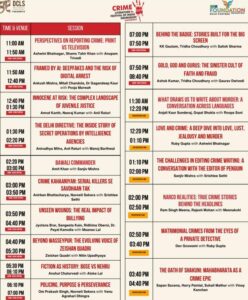 अंतिम दिन में सत्र होंगे, अपराध रिपोर्टिंग (अश्विनी भटनागर और शम्स तहिर खान), नाबालिग न्याय (अमोद कांत और नीरज कुमार), खुफिया संचालन (अनिल रतुरी और अनिरुद्ध्य मित्रा)। इसके साथ ही ज़ीशान कादरी, केके गौतम और त्रिधा चौधरी अपराध और सिनेमा के संबंध पर चर्चा करेंगे। अन्य सत्रों में डीप फेक, लैंड फ्रॉड, ड्रग्स, वीमेन सेफ्टी, साइबर फ्रॉड, सीरियल किलर, बुलिंग, और बहुभाषी अपराध साहित्य की वापसी पर विचार किया जाएगा।फेस्टिवल सचिव रंधीर के अरोड़ा ने कहा, “हमारा उद्देश्य ऐसा मंच तैयार करना है जहाँ अपराध, रचनात्मकता और सार्वजनिक संवाद सार्थक रूप से एक साथ आ सकें।”