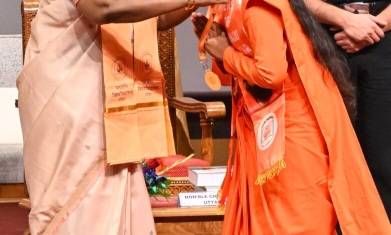 राष्ट्रपति द्रौपदी मुर्मु ने पतंजलि विश्वविद्यालय हरिद्वार के द्वितीय दीक्षांत समारोह में स्वर्ण पदक प्राप्त विद्यार्थियों को किया सम्मानित