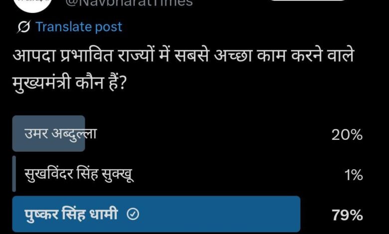टाइम्स ग्रुप के सोशल मीडिया साइट “एक्स” और व्हाट्सएप कम्युनिटी सर्वे में मुख्यमंत्री धामी टॉप पर