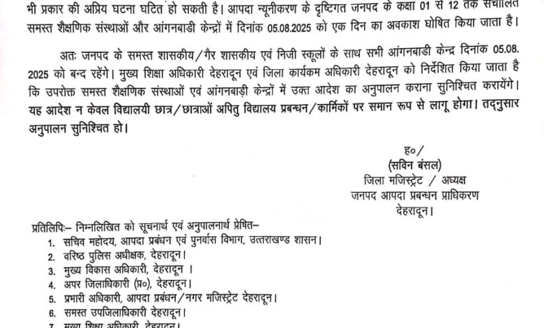 देहरादून समेत इन स्कूलों में मंगलवार को रहेगा अवकाश, देखिये आदेश